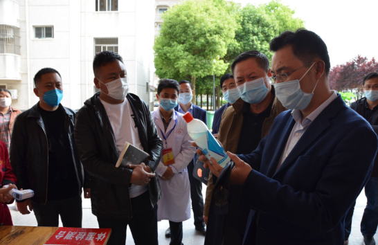 杨杰科长首先肯定了学校在防疫方面做的工作,他说六安一中的防疫体系完备,并从专业角度提出了一些具体的建议。
