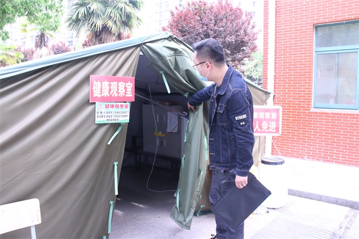督查组一行实地查看了校门口体温检测点、隔离观察室、防护物资储备室、室外洗手设施以及教学楼、学生食堂、学生宿舍等场所的疫情防控情况。