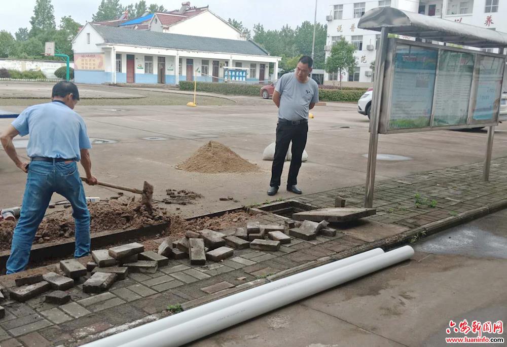 5月14日,一场暴雨过后,舒城县孔集小学校园主干道积水严重,给师生通行带来极大不便。