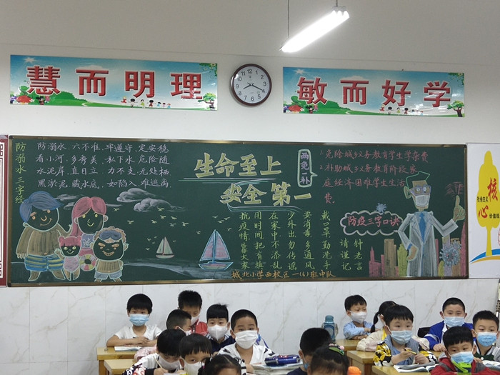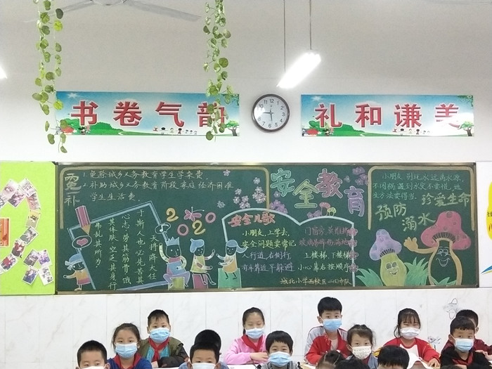 本次活动在各班主任精心的组织、引导下,围绕不同的“安全教育”主题为中心,以防疫、交通、食品、防溺水等为重点进行安全宣传教育。每一幅黑板报作品都设计美观新颖,色彩鲜明和谐,图文并茂地展示了城北小学两校区师生扎实的绘画及书写功底。件件作品凝聚了班主任的心血和同学们的智慧,也彰显了各班班级风貌,黑板报文化俨然已经成为一道亮丽的风景线。
