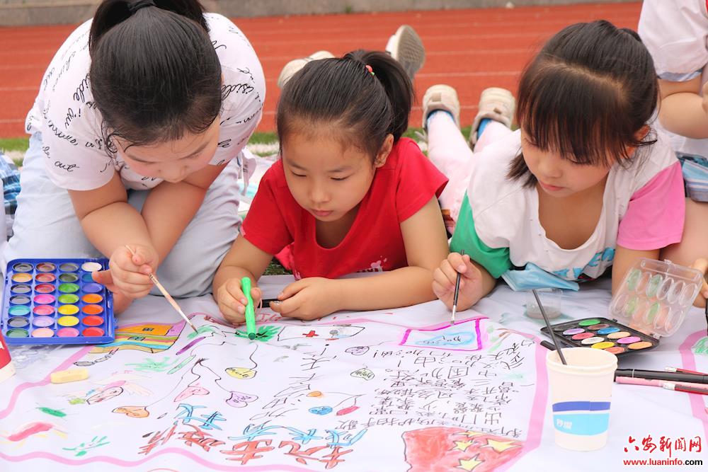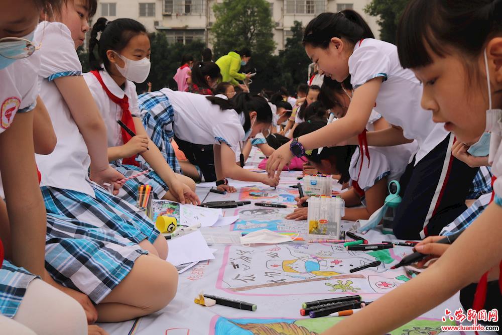 5月29日上午,六安市城北第二小学举行“抗击疫情 成长有我”为主题的百米长卷绘画活动,用绘画的形式致敬祖国,感恩英雄,也以此庆祝即将到来的“六一”儿童节。
