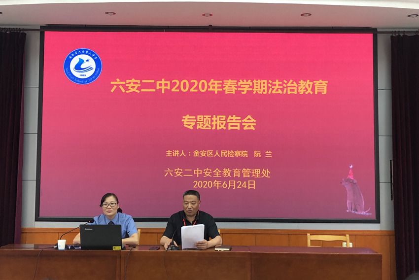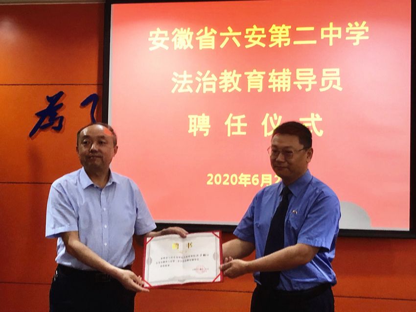 当天,签约仪式后,六安第二中学还向金安区人民检察院阮兰、刘贵芳、汪子翾三名干警颁发“法治教育辅导员”聘书。阮兰为高一学生做了一场法治讲座报告,通过讲述身边事、身边人等典型案例,以图文并茂的形式,让学生们明白如何保护自己,如何防范性侵害、校园欺凌等违法犯罪行为。(记者 单姗 文图)