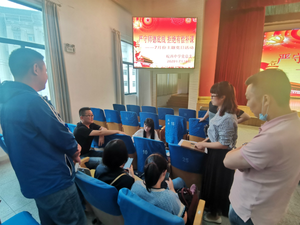 2020年7月16日下午,皖西中学党总支在学术报告厅开展“严守师德底线,拒绝有偿补课”主题党日活动。六安二中党委委员、副校长、皖西中学校长王建安同志,党总支书记张旭同志,全体党员参加了这次活动,活动由党总支组织委员方春艳同志主持。