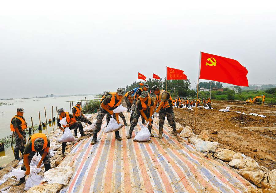 长时间的高水位浸泡,堤防随时可能出现险情。广大解放军、武警官兵、一线干部群众上堤巡查防守,查险抢险除险,保江河安澜,与洪水作战,成为驻守一线的“防汛战士”。