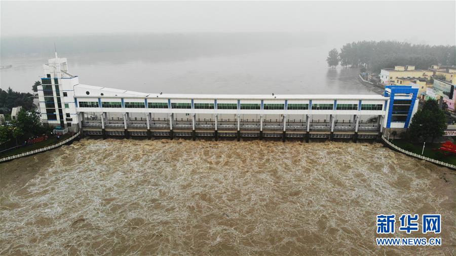 7月20日,淮河王家坝闸开闸泄洪(无人机照片)。新华社记者黄博涵摄