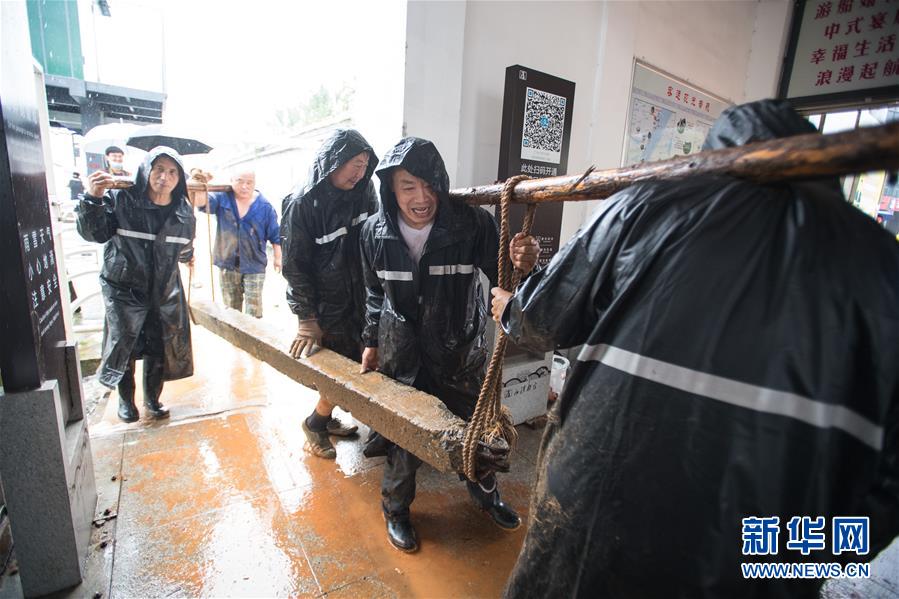 7月6日,工作人员在湖北武汉龙王庙封堵闸口。新华社记者肖艺九摄