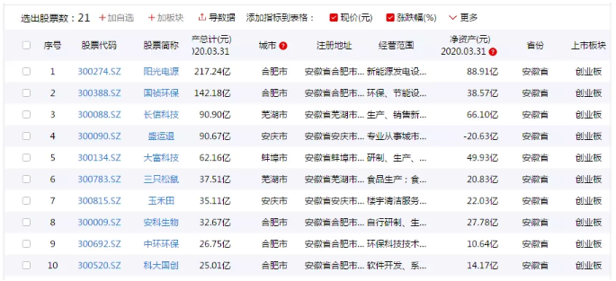 从地域分布上看,安徽的创业板公司大多集中在合肥,共有10家。芜湖、安庆、滁州有2家。蚌埠、池州、淮南、宣城、铜陵各1家。从行业分布来看,创业板皖企多为“两新”产业企业,如医药制造业的安科生物、山河药辅,软件和信息技术服务业的科大国创,生态保护和环境治理业的国祯环保等。