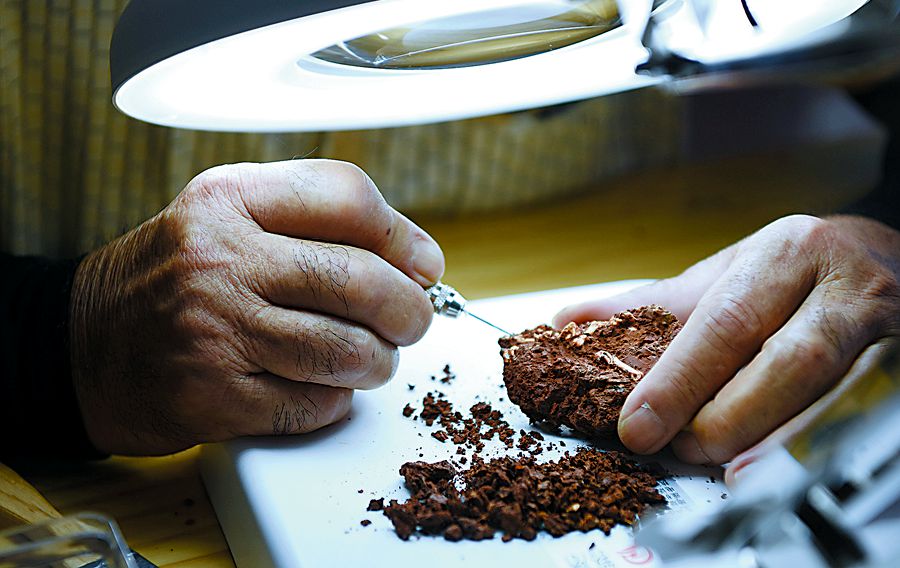 8月18日,繁昌人字洞遗址2020年考古发掘工作现场,考古工作者在挖掘动物化石。据悉,考古队对本次发掘的具体位置、具体计划作了初步拟订,对发掘地区进行了测量、布方。发掘工作将持续到9月中旬。