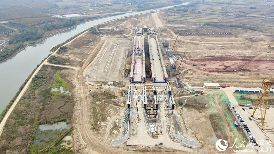 引江济淮淠河总干渠钢渡槽合龙现场 。张俊摄