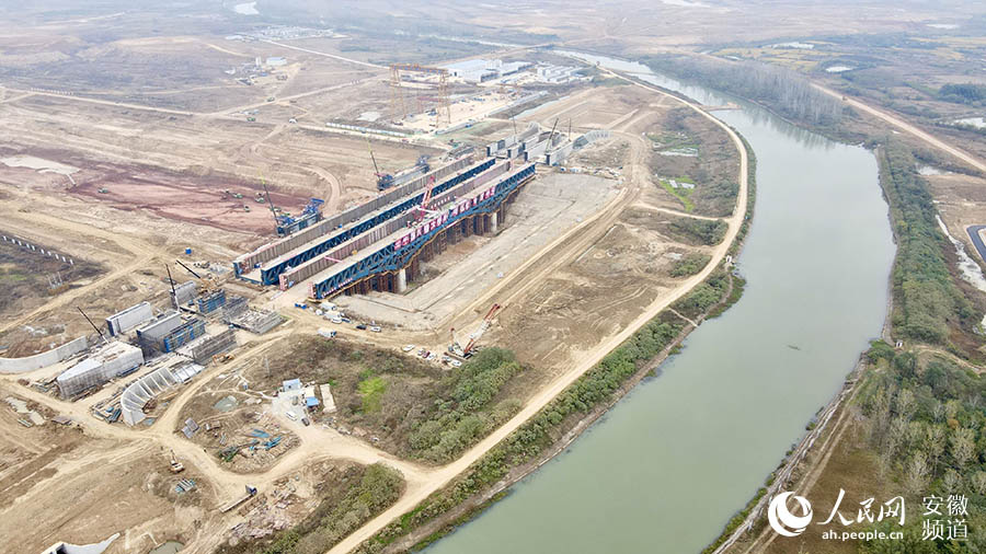 俯瞰引江济淮淠河总干渠钢渡槽施工现场 。张俊摄