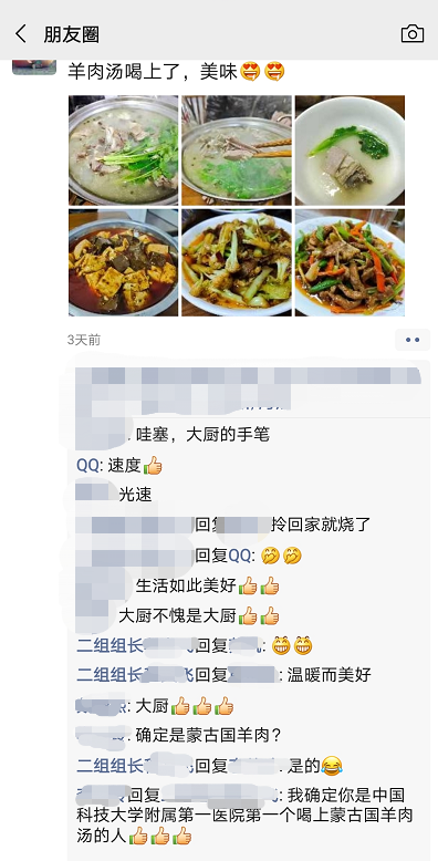 普外科杨美玲开心地说,“作为一名援鄂队员,在这寒冷的冬天,收到蒙古国的羊肉,感到非常温暖。感谢抗疫这段难忘的经历,感谢武汉,感谢蒙古。”队员们都开心地在群里互相讨论羊肉的各种做法,羊肉不腻不膻,肉质鲜美,朋友圈也被蒙古羊刷屏。这份来自蒙古国的意外之喜,让医护人员深深感受到了蒙古国和武汉人民浓浓的情谊与温暖。 (朱伟华 方萍 记者 徐慧媛)