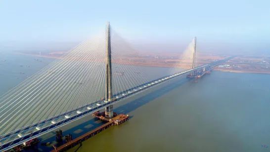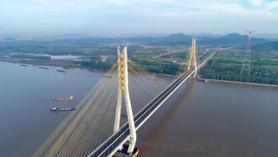 池州长江公路大桥全长5.825公里,主跨828米,为等高塔双索面单侧混合梁斜拉桥。大桥于2014年12月底开工,2019年8月底建成通车。