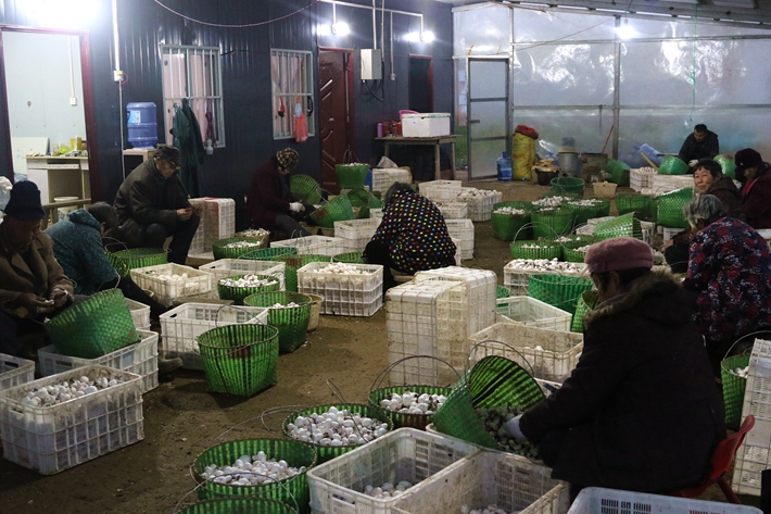 2019年,中石化援建的双孢菇种植加工基地建成以后,他们是第一批入职的贫困户。现在老人每天六七点到基地上班,中午在基地就餐。行情好的时候每天得有七八十元的收入,再加上贫困户就业补贴,一个月下来老两口有三四千元的收入。