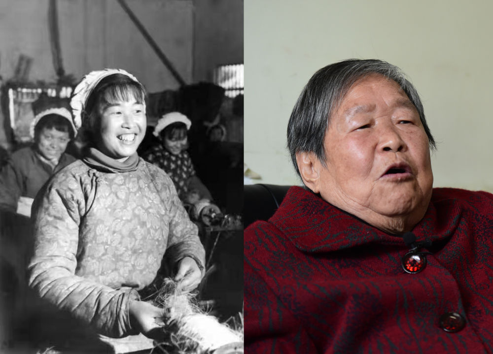 左图:马毛姐旧照,当年14岁的她是运送解放军渡江船工中年龄最小的一个;