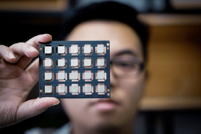 工作人员展示用于无人机的芯片。新华网发(贾代腾飞 摄)