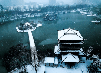 雪后的逍遥津公园。新华网发(许晖 摄)