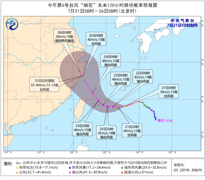 据中央气象台消息,截止21日11时,“烟花”已经升级为14级强台风,中心距离台湾省宜兰县偏东方向约620公里,未来 “烟花”将以每小时10公里左右的速度向偏西方向移动,强度逐渐加强。