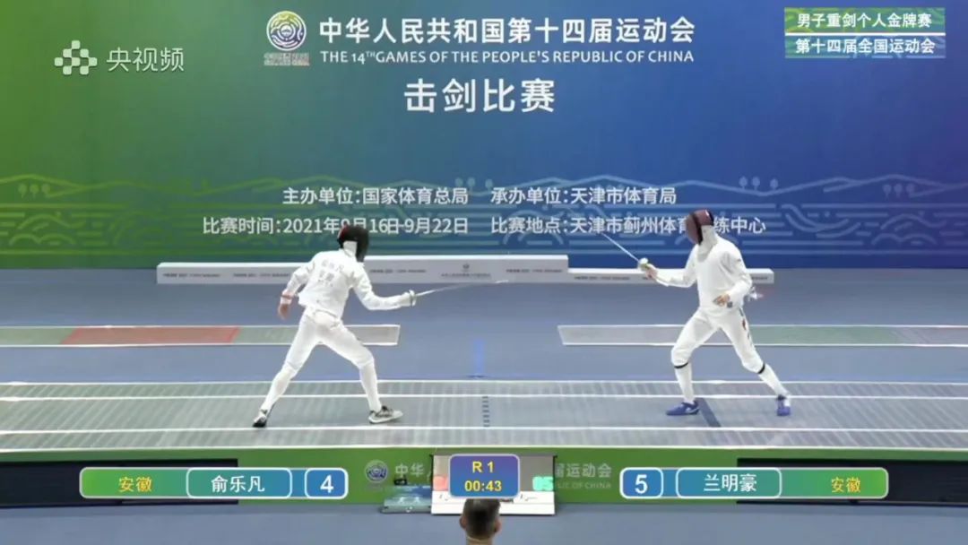 安徽男子重剑队与兰明豪领衔的奥运联合队相遇团体决赛,我省运动员俞乐凡与兰明豪会师个人决赛,全运会男子重剑赛场两次上演“安徽德比”,让安徽省体育代表团提前包揽冠亚军。