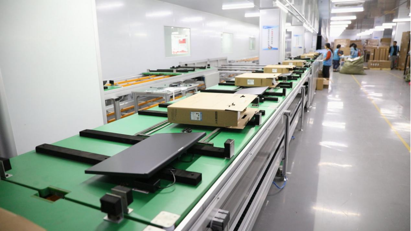 在淮南高新产业园项目一期,安徽贝可科技有限公司生产的77寸液晶电视机背板,用于小米电视。