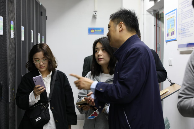 图为中国移动长三角(淮南)数据中心副经理许辉向记者介绍项目