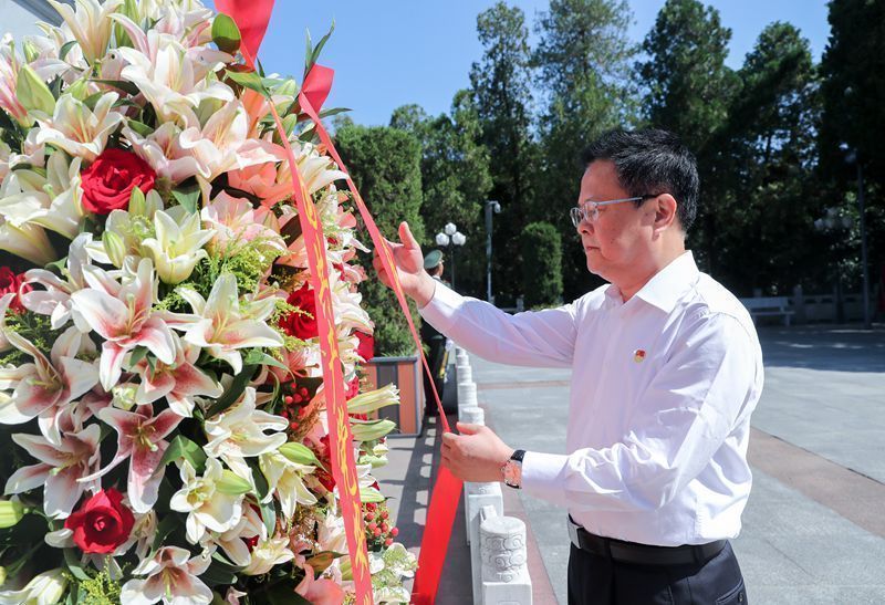 省委书记郑栅洁在六安市金寨县红军广场,向革命烈士纪念塔敬献花篮。 徐国康 摄