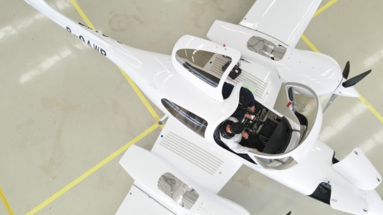 11月16日,在位于安徽省芜湖市湾沚区的中电科芜湖钻石飞机制造有限公司内,技术人员在进行飞机检测工作(无人机照片)。