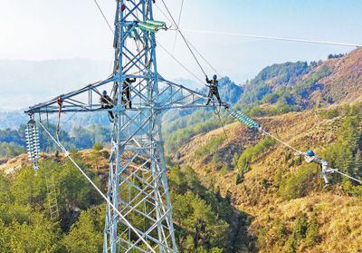 12月9日,安徽送变电工程有限公司施工人员在岳西县五河镇司空—仙河110千伏输电线路工程现场施工。