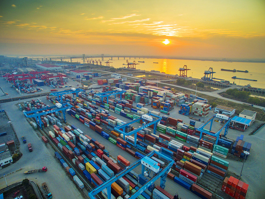一年后的2021年10月22日,苏皖合作示范区安徽定埠港集装箱航线启笛首航。货物经过这里往下游的长三角地区运输,相比传统的长江水道,航程缩短100多公里,极大地节省了企业运输成本。