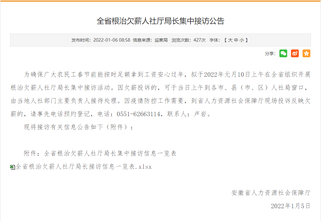 局长集中接访!安徽根治欠薪放“大招”,预约电话公布