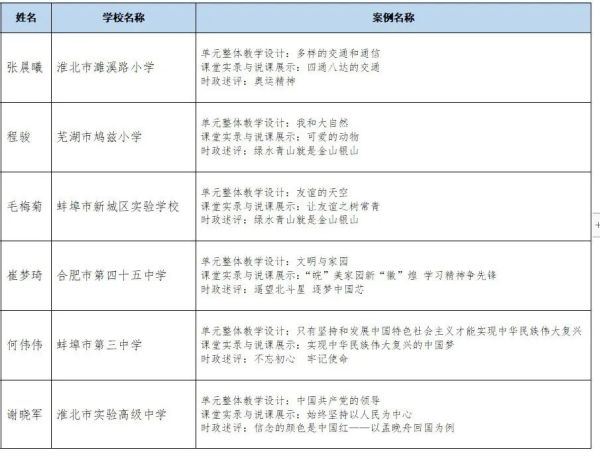 12日,教育部公示了《关于2021年全国中小学班主任基本功和思政课教师教学基本功展示交流活动典型经验名单》,经省级教育行政部门推荐,根据专家评审、综合评判,确定2021年全国中小学班主任基本功和思政课教师教学基本功展示交流活动典型经验。公示期为2022年1月12日—19日。安徽共有7名班主任、6位思政课教师入选。