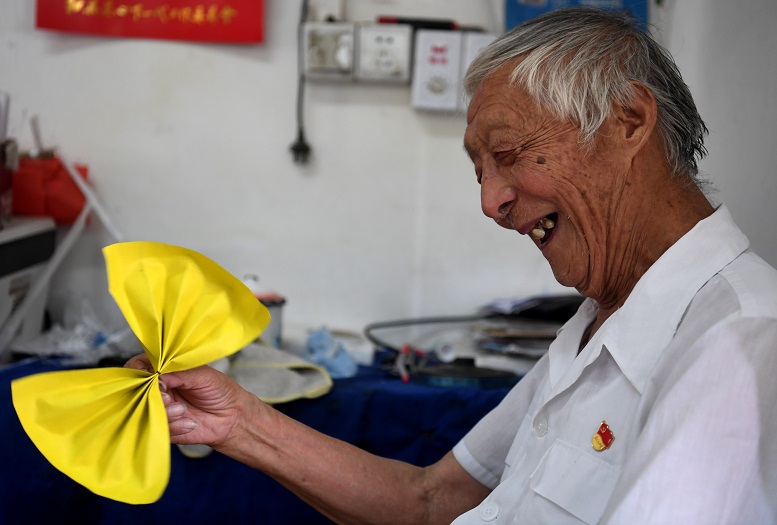 叶连平在欣赏学生送给自己的折纸礼物 刘军喜 摄