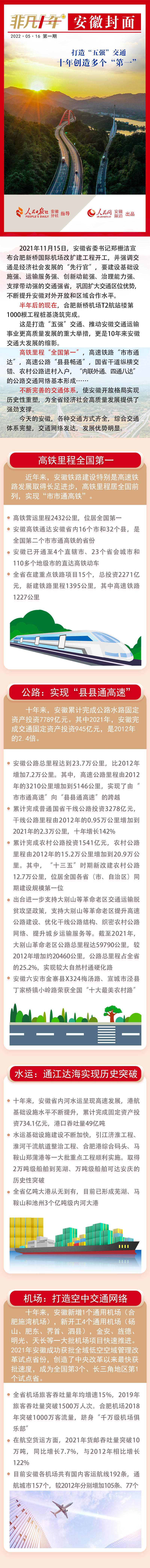 为激励广大干部群众满怀信心奋进新征程、建功新时代,即日起,人民网安徽频道推出“非凡十年·安徽封面”——迎接党的二十大胜利召开主题报道。本组报道聚焦十八大以来安徽全省各地各领域的工作亮点,重点展现安徽的新行动、新进展、新经验、新气象、新成绩,讲好安徽故事,展现安徽作为,发挥安徽力量,以优异成绩迎接党的二十大胜利召开!
