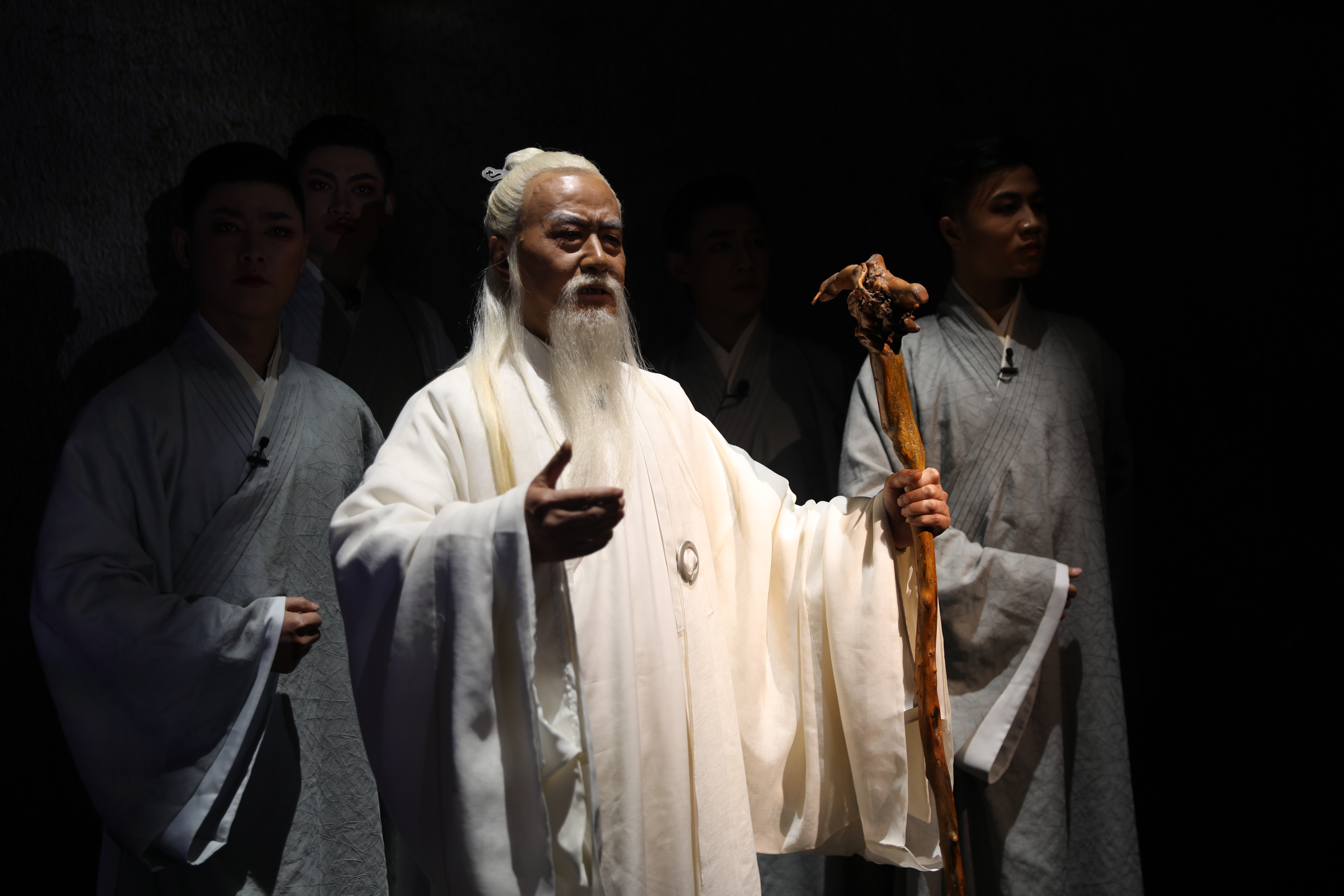 方以智,字密之,明末清初著名思想家、文学家、科学家,自幼秉承家学,博览群书,在哲学、训诂、医学、自然科学、诗文、书画艺术等诸多领域成就斐然,被誉为十七世纪“中国百科全书式人物”。反映方以智不凡事迹和精神的这部原创黄梅戏,除序幕外,分设《流离草》《宝刀行》《天地孤》《归去来》四幕,层层推进,高潮迭起。在尊重历史真实的前提下,该剧以丰沛而浪漫的想象力,以引人入胜的故事情节,别开生面地塑造了一代学人方以智的高风亮节与感人至深的艺术形象,再现了风雨飘摇的易代之际,方以智一腔孤勇,决绝向前,为救世、图复兴,虽历经劫难,家国情怀始终不改,其“为天地立心、为生民立命、为往圣继绝学”的志向愈发坚定,并在绝境中悟出要复兴“政治清明、科学昌明、礼仪文明”的堂堂中华,以求“天下归仁”,为此他勠力合璧中西,会通儒释道,博采众长,著书立说不已,为后世留下皇皇著作,播下可贵的精神火种。整部剧目综合运用多种艺术表现手段,熔思想性、艺术性和观赏性于一炉。演员们表演比较细腻,动作与情感到位,比较精准地把握了人物性格和形象定位,看点、燃点与泪点交融,情味、韵味和余味无穷。