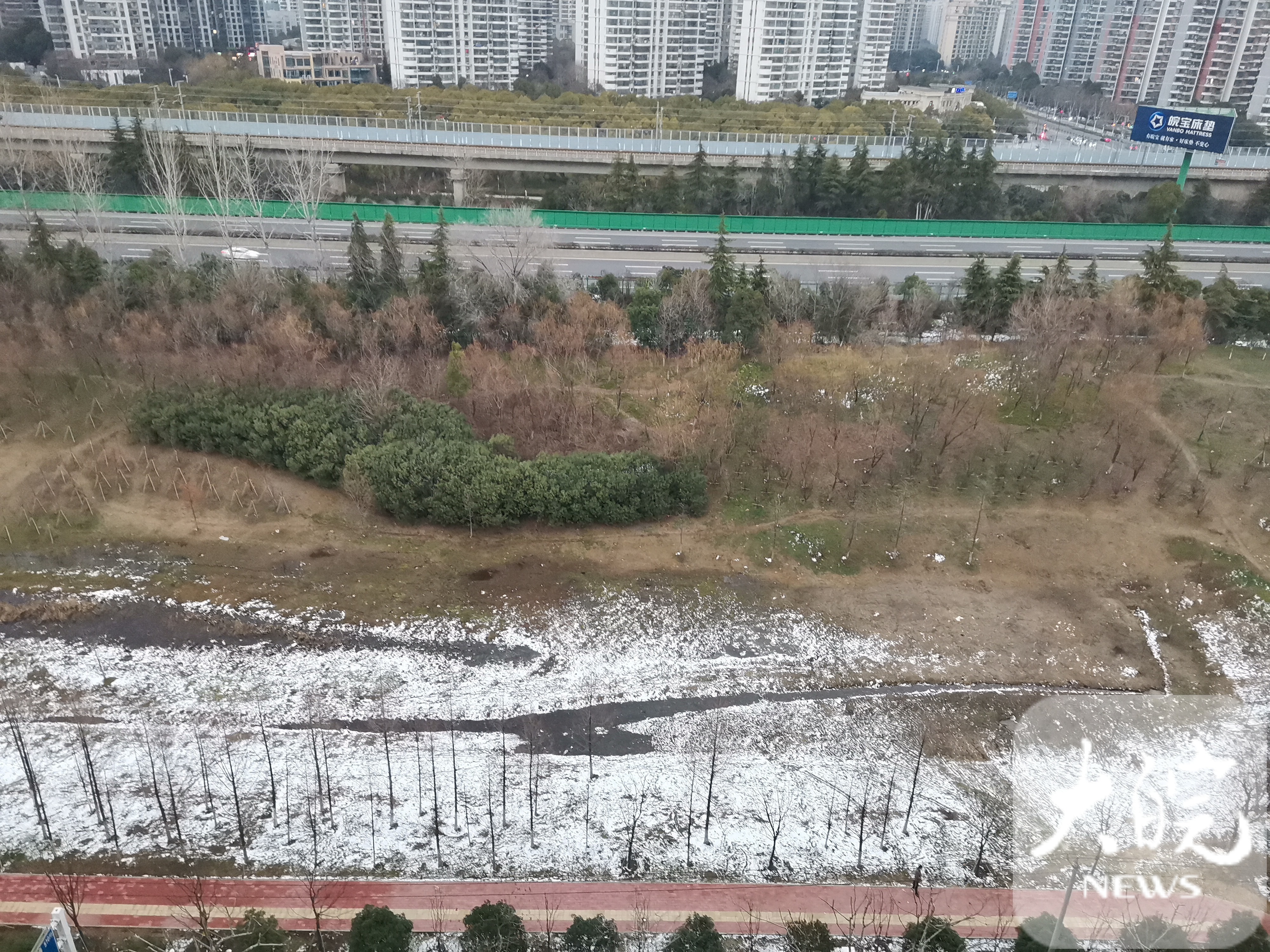 15日上午,大皖新闻记者拍摄合肥市经开区一处被积雪覆盖情景。