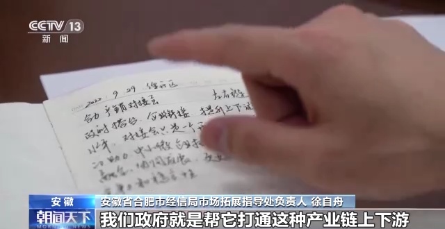 总台央视记者 田琪永:为了更好服务企业,2022年9月合肥专门成立了市场拓展指导处。在我手里拿的是一名工作人员的笔记本,我们可以看到,短短几个月,这个笔记本就已经被记满了各种记录,随意一翻就可以看到各类企业的名字和他们的需求。
