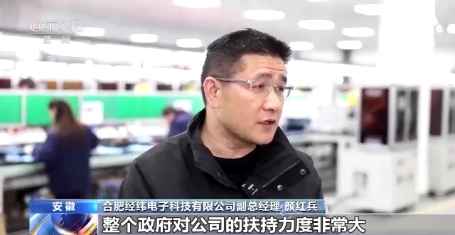 合肥经纬电子科技有限公司副总经理 颜红兵:整个政府对公司的扶持力度非常大,政府答应的全部都一一兑现了,一诺千金。