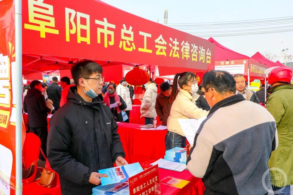 ▲2月3日,阜阳市工会举办就业援助专场招聘会现场。上游新闻 张鹏 通讯员 盛田田 摄