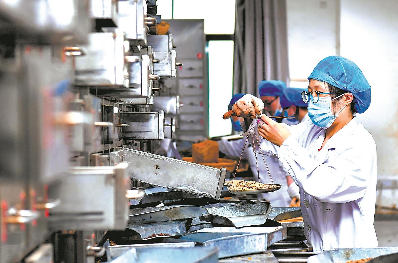 中药房内,药剂师忙着“按方抓药”。