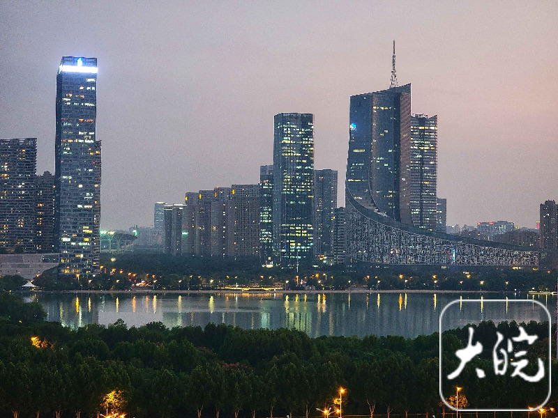 10月8日,合肥政务区,夜幕下的天鹅湖一片宁静。节后合肥天气晴好,气温反弹,但早晚很凉。大皖新闻记者 项春雷 马杨杨 /摄