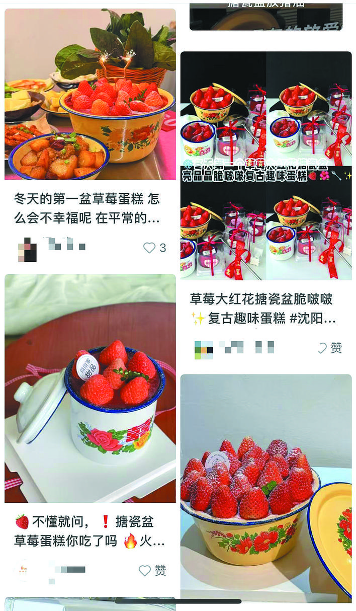 搪瓷盆草莓蛋糕在社交平台走红(网络截图)。