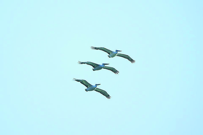 通过何斌拍摄的照片,巢湖生物资源鸟类调查组专家表示,这一次来的是“一家三口”,两只成年鹈鹕带着一只亚成鸟。