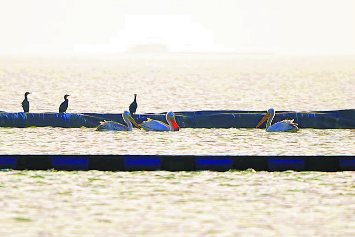 1月6日,巢湖边拍摄到的卷羽鹈鹕一家。何斌 摄