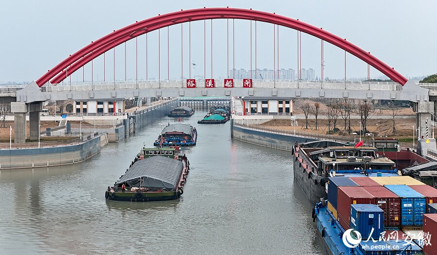 船舶通过裕溪船闸。人民网记者 苗子健摄