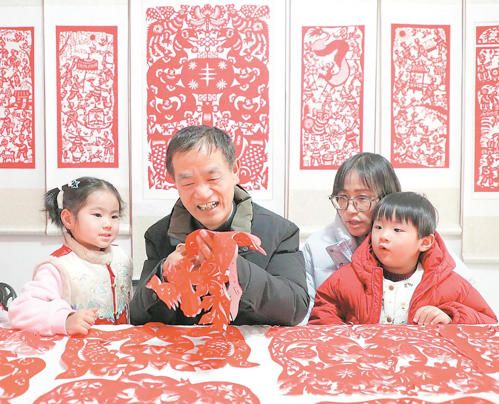 1月10日,阜阳剪纸艺人葛庭友正在创作剪纸作品。记者 李季 摄