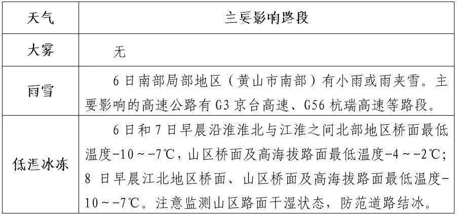 6日:江北阴天转多云;江南阴天,南部局部有小雨或雨夹雪。