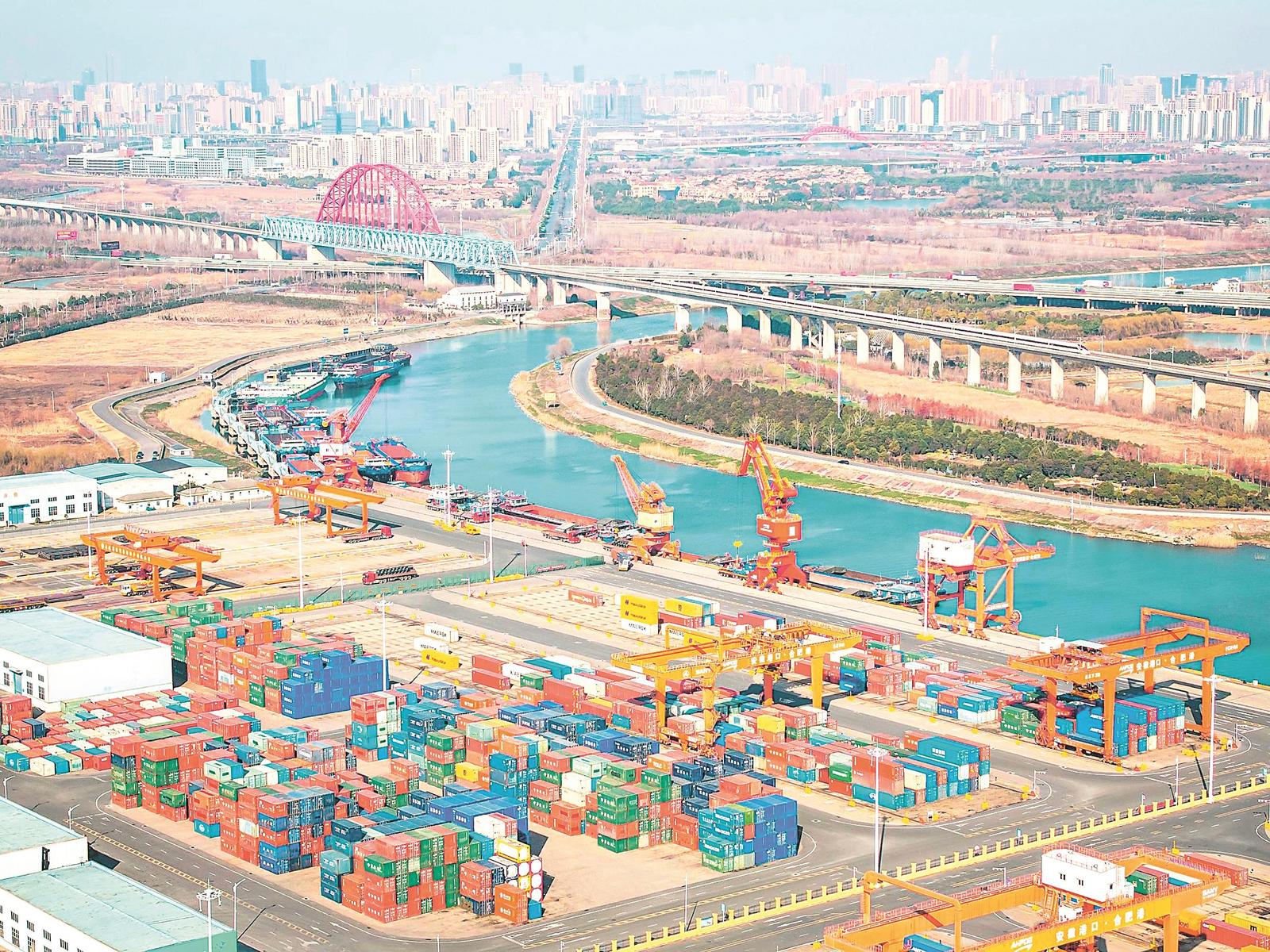 2月6日拍摄的合肥港国际集装箱码头,一片繁忙景象。记者 范柏文 摄