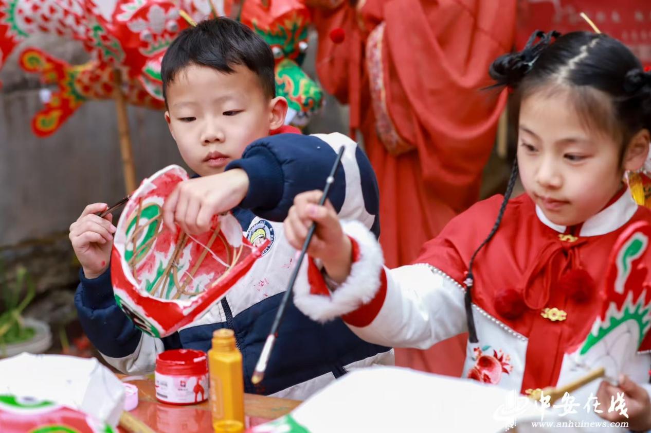 2025年2月10日,农历正月十三,在安徽省黄山市歙县溪头镇汪满田村,小朋友正在体验制作非遗鱼灯。