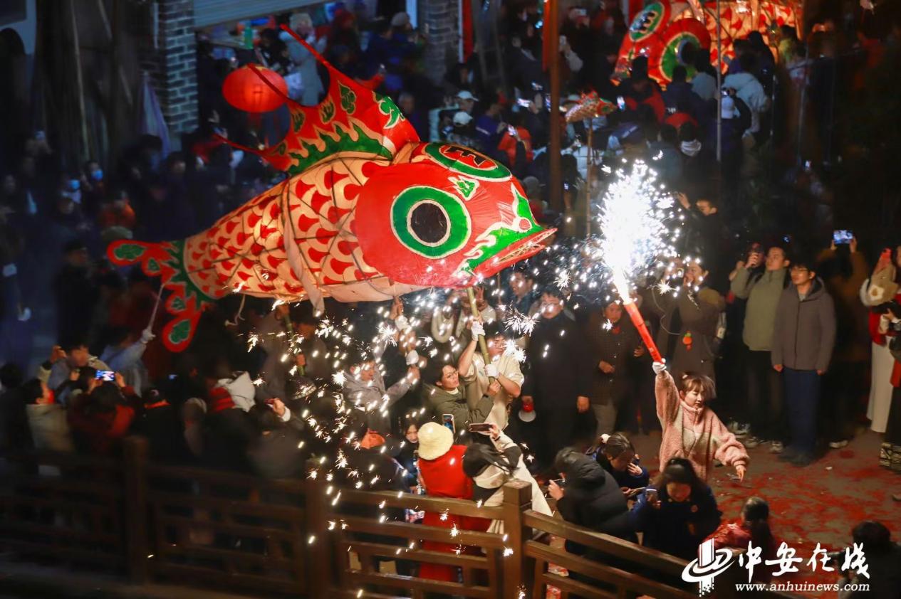 中安在线、中安新闻客户端讯 2025年2月10日,农历正月十三,在安徽省黄山市歙县溪头镇汪满田村,当地村民正在村中表演汪满田鱼灯,引来众多游客和市民前来观赏。