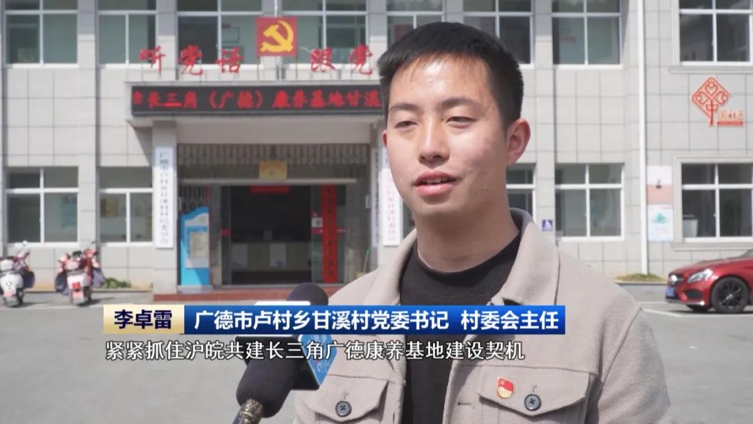 广德市卢村乡甘溪村党委书记 村委会主任 李卓雷:紧紧抓住沪皖共建长三角广德康养基地建设契机,围绕“候鸟式异地养老”、“疗养式旅居养老”和“田园式沉浸养老”等康养路线,做足生态特色文章。