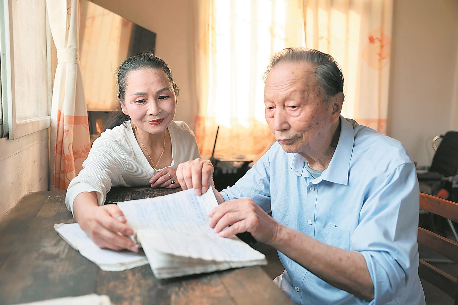 3月26日下午,陈跃兰和90多岁的父亲重温家族收集的当涂民歌古调,回忆童年父亲教她传唱当涂民歌的温情故事。